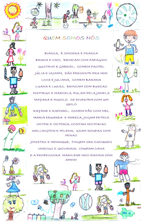 ESTE BLOG TEM COMO OBJETIVO, DIVULGAR OS TRABALHOS REALIZADOS PELA TURMINHA DO 4º ANO B, DA EMEF "FERNANDA GRAZIELLE RESENDE COVRE", DE HORTOLANDIA -SP. ESTAREMOS USANDO O "LIXO" COMO MATERIA PRIMA NA CONSTRUÇÃO DE JOGOS, BRINQUEDOS, OBJETOS DECORATIVOS E UTILITARIOS... FICA AQUI UMA SUGESTÃO PARA QUE OUTROS EDUCADORES UTILIZEM DESTE RECURSO QUE RESULTARÁ EM SUCESSO NA APREDIZAGEM DAS CRIANÇAS! ENTREM E APROVEITEM! inicio deste blog: 12 de abril 2010